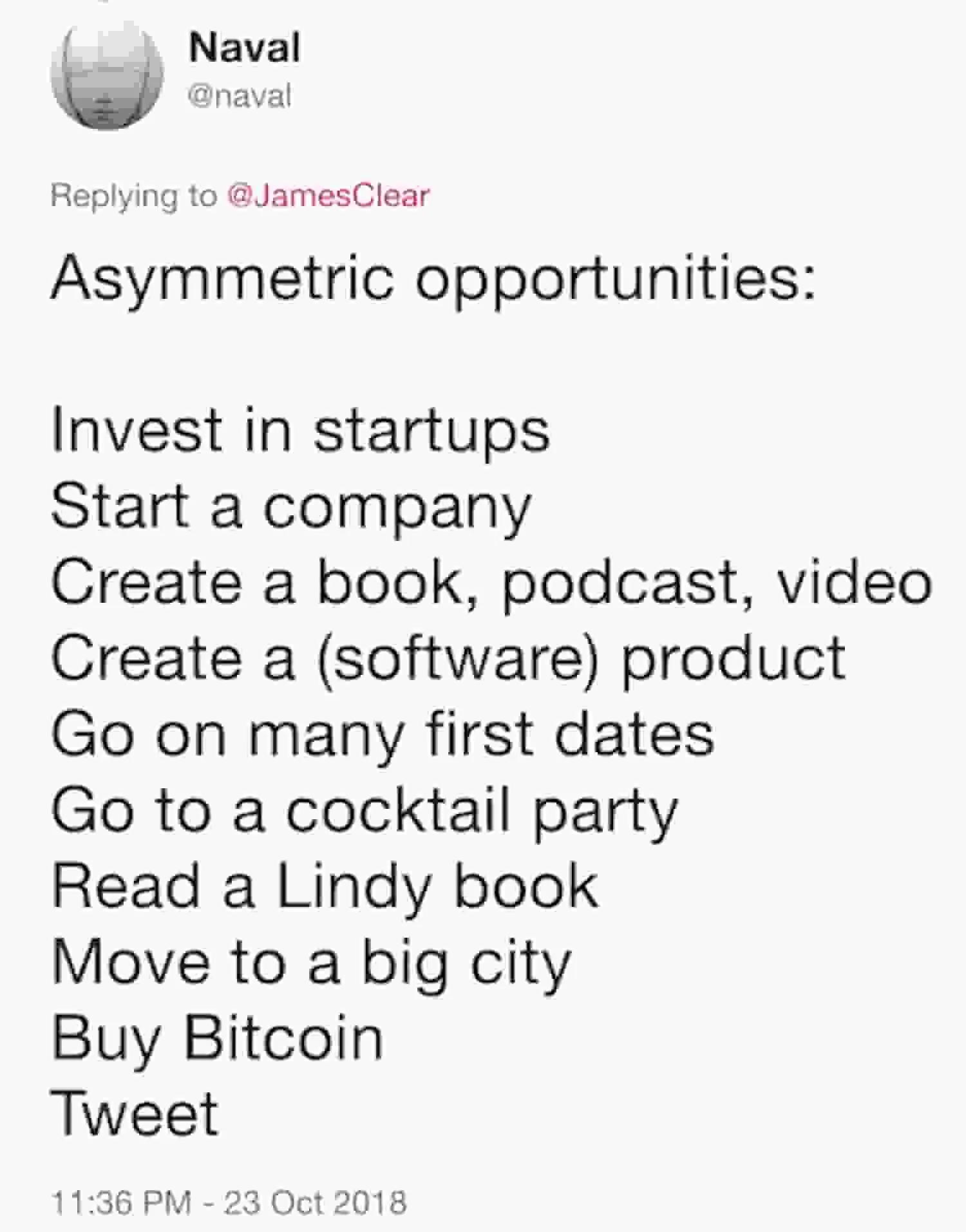 Asimetrik getirileri olabilecek işleri denemek ve varlık inşa etmeyi bu yolla sağlamak girişimci için bir yaşam tarzı olmalıdır.